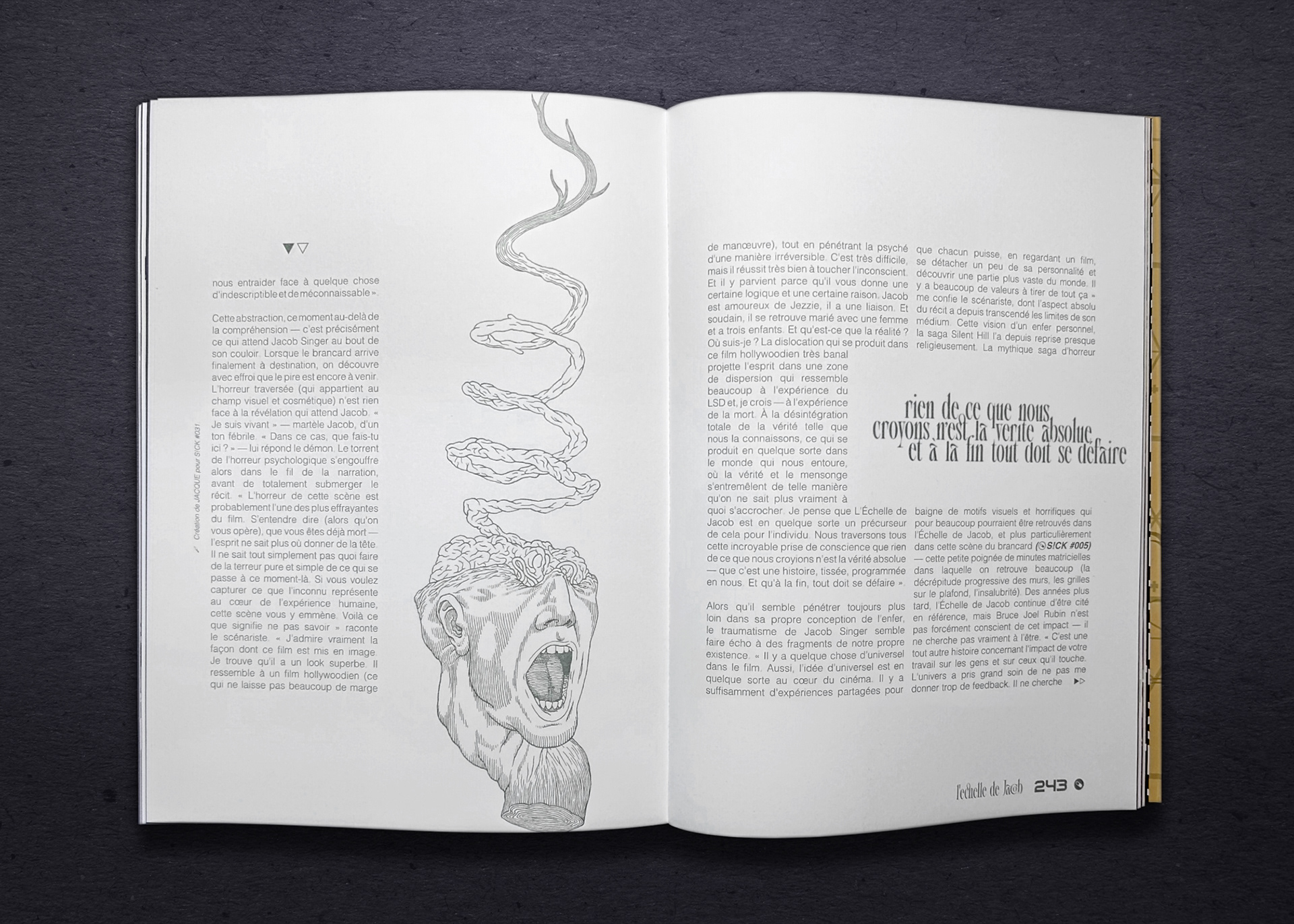 Pour ce numéro 31, j'ai eu le plaisir d'illustrer le grand dossier consacré à l’Échelle de Jacob à travers la rencontre avec son scénariste, Bruce Joel Rubin.