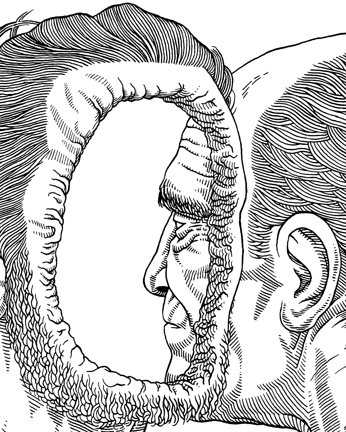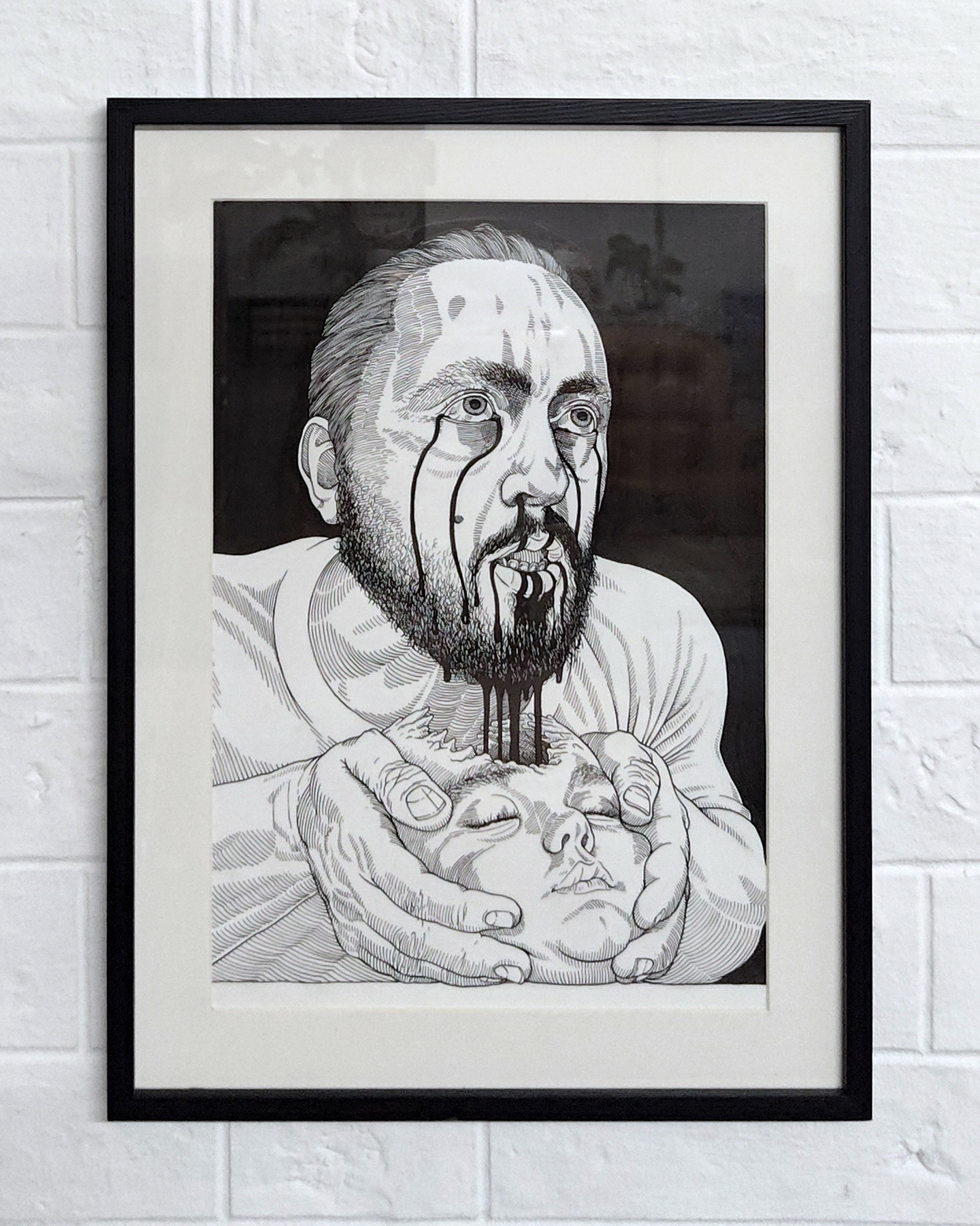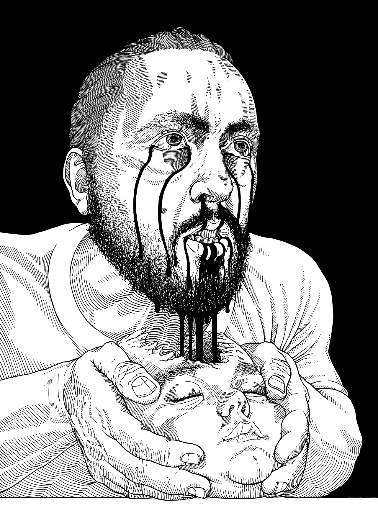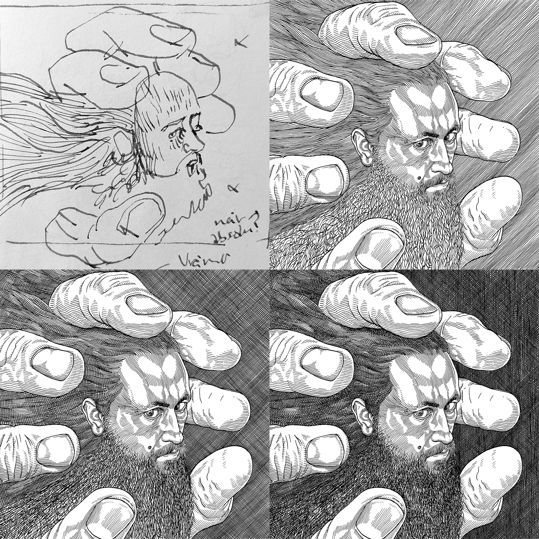 Se regarder pour se dessiner, capturer fidèlement mes traits pour créer un repère dans le temps. Confirmer à ma façon l'évolution de mon style, de mes thèmes. Chaque autoportrait que j'ai réalisé a marqué une étape de ma carrière et de ma vie. Puisse la nouvelle ère augurée par celui-ci être favorable.